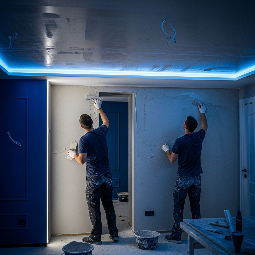 A base de uma pintura de alto padrão. Aplicamos o gesso liso para corrigir imperfeições da alvenaria e criar superfícies absolutamente planas e lisas. Resultado: um ambiente valorizado, com uma estética premium e preparado para receber qualquer tipo de tinta ou revestimento.