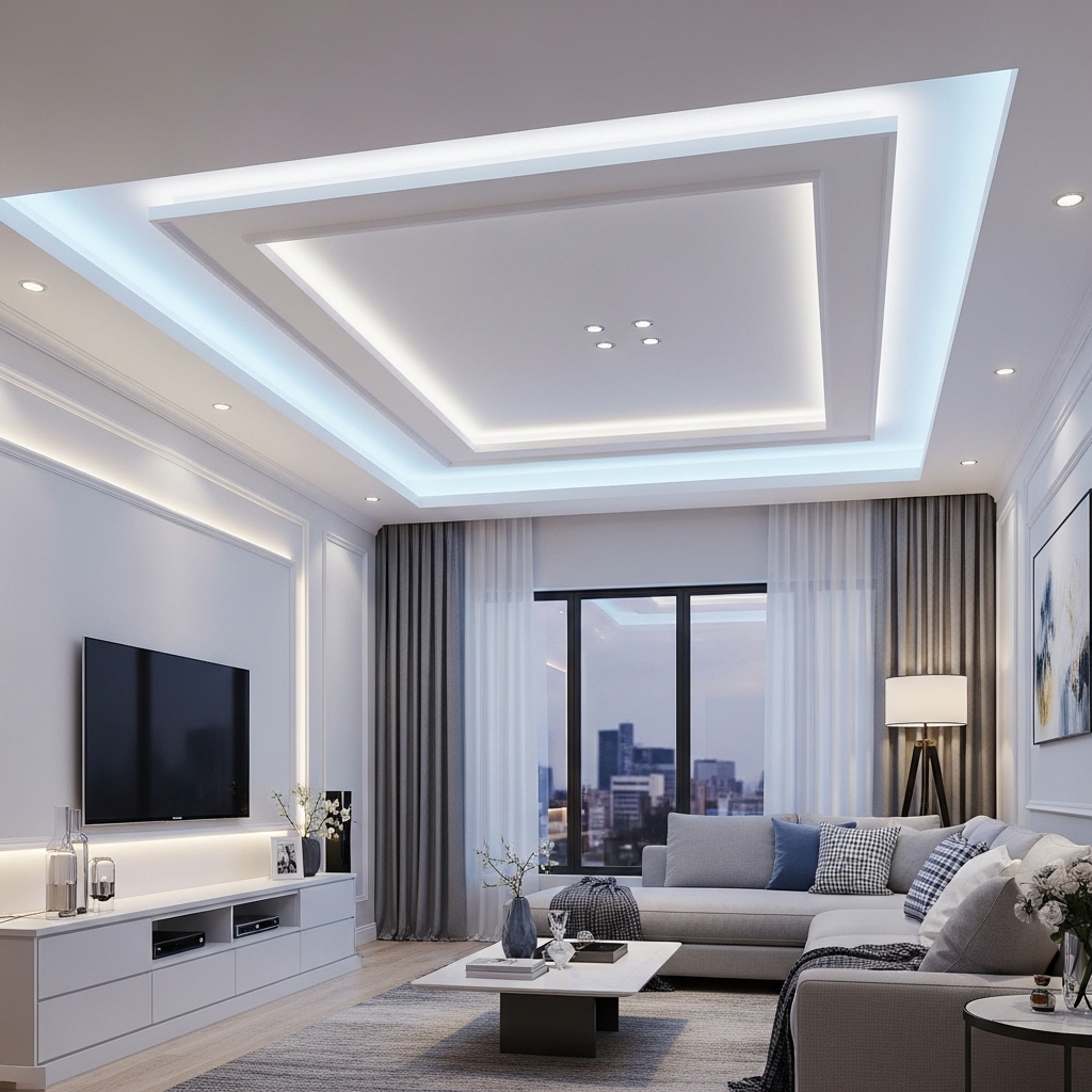 Transforme o teto do seu ambiente! Criamos forros rebaixados que permitem a integração perfeita de iluminação embutida (spotlights, fitas de LED), sistemas de climatização e acústica, elevando o conforto e o design do espaço a um novo patamar.